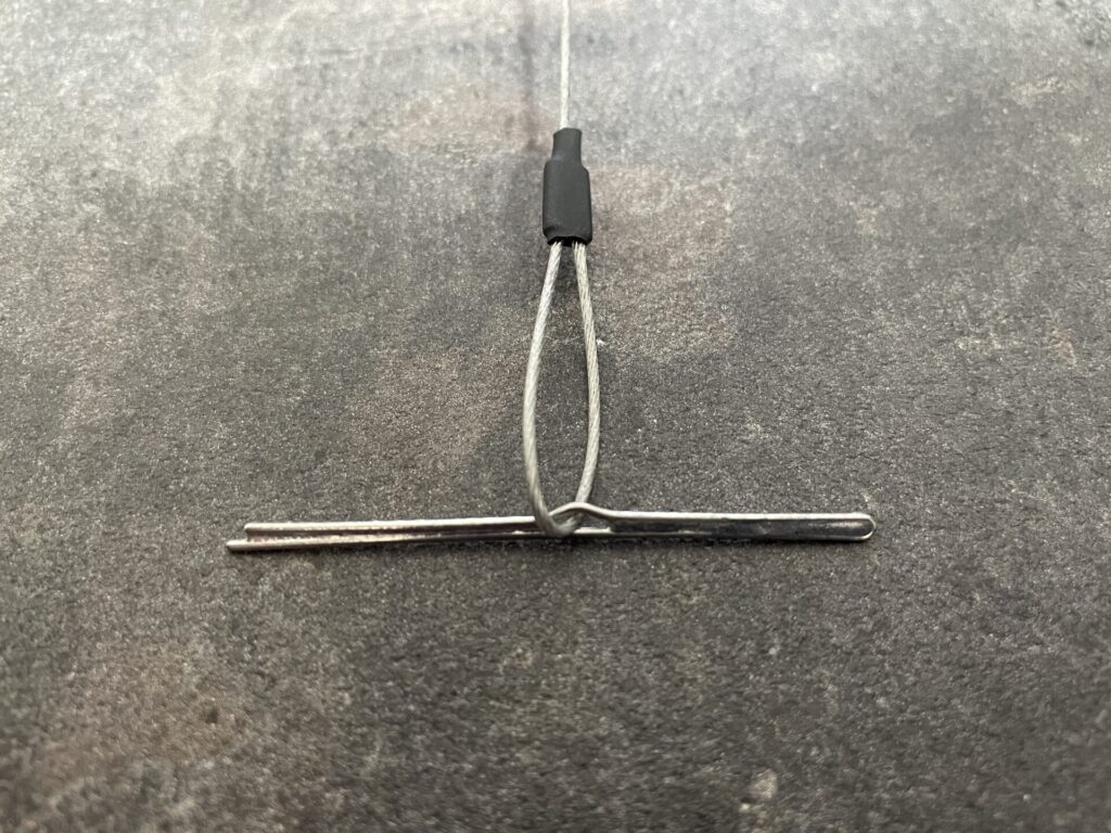 ②貫通したら「ワイヤーに対してチョッキを垂直」にすると、下顎外側にチョッキが引っ掛かり止まります。